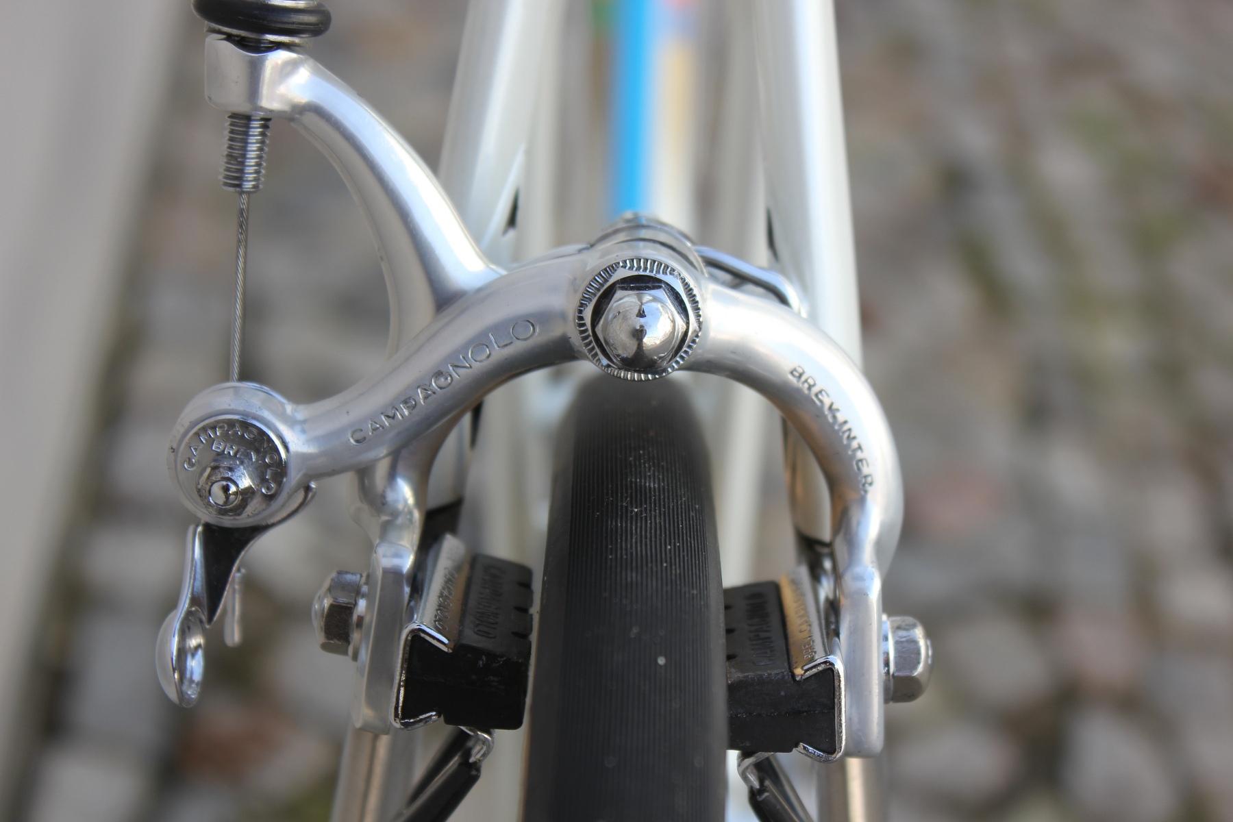 Aufgebaut ist das Rad natürlich mit der besten italienischen Gruppe: der Campagnolo Super Record – in perfektem Zustand. Alles original erhalten und nur sehr wenig gefahren.