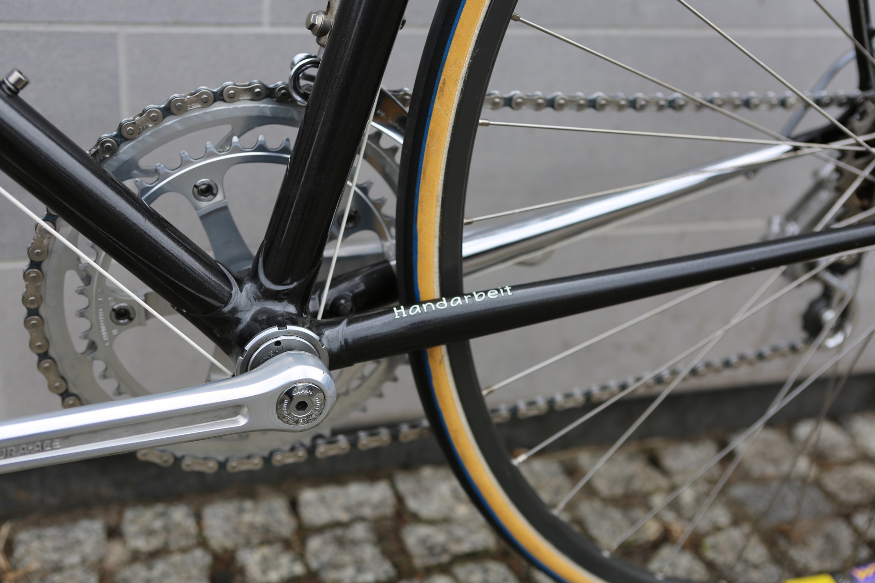 Das Rad stammt aus erster Hand. Der Vorbesitzer war von der Art und Weise, wie Glöckner für ihn ein Rad baute, wie er zuvor Maß nahm und schließlich das Rad exakt nach den Vorlieben des Kunden aufbaute, sehr begeistert. Leider ist das Rad nach Fertigstellung nur sehr wenig gefahren worden. Somit besteht hier die Möglichkeit, einen top erhaltenen Klassiker der Firma Langenberg Rad, gelötet von Glöckner, zu bekommen. So sieht man ihn sicher nicht besonders oft auf unseren Straßen.