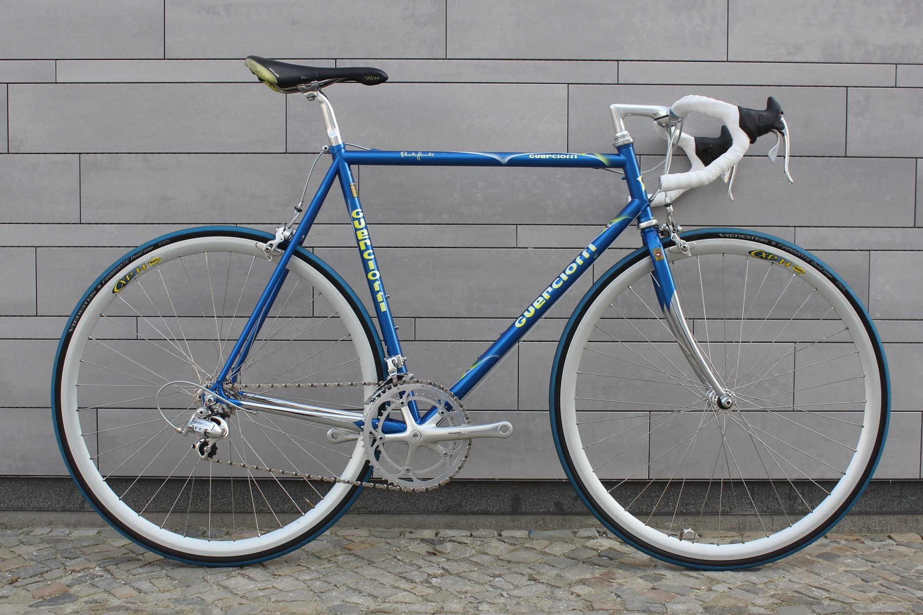 This is a beautiful Guerciotti from the late 1990s, built with a Columbus EL steel frame and a complete Campagnolo Chorus groupset in size 57 cm.