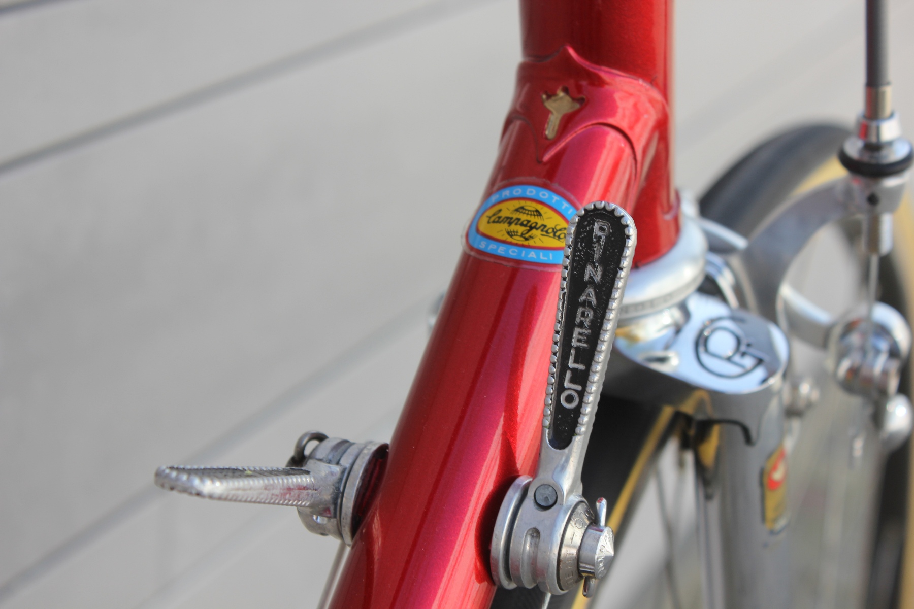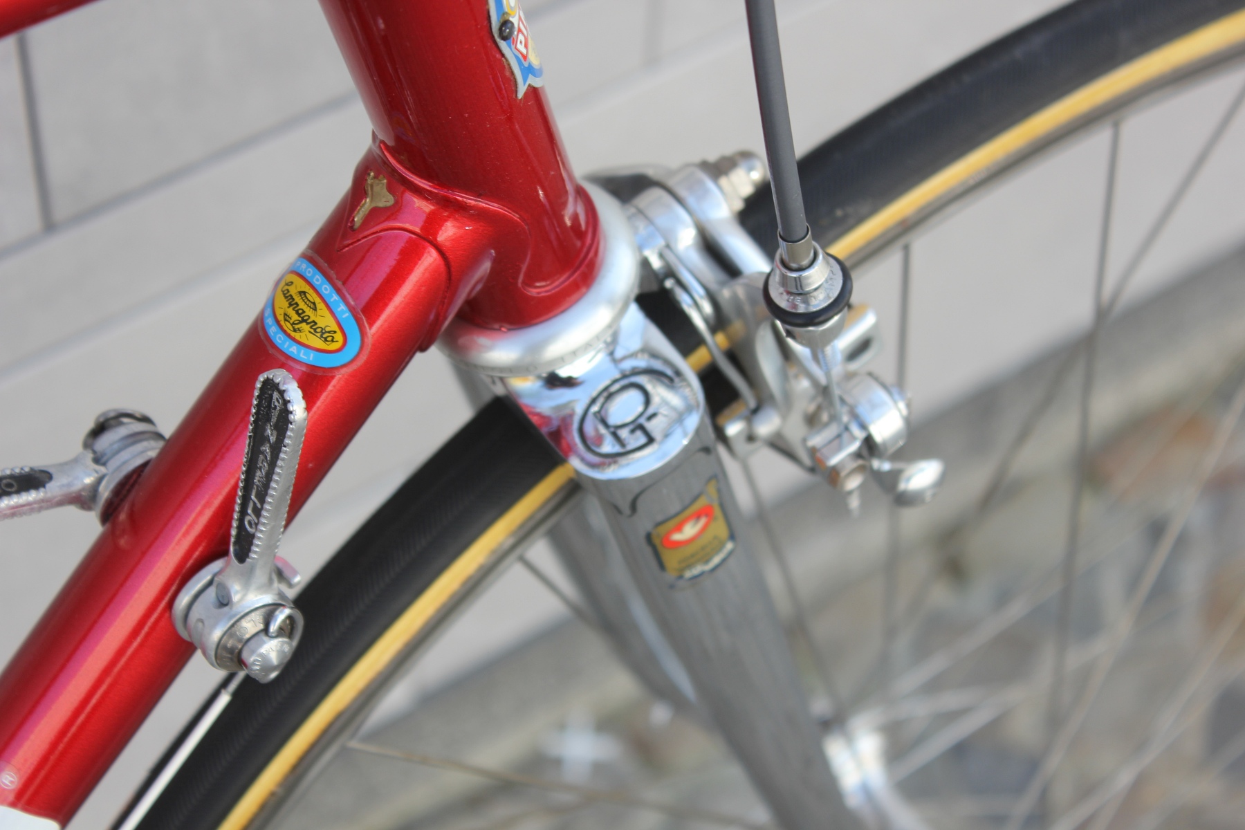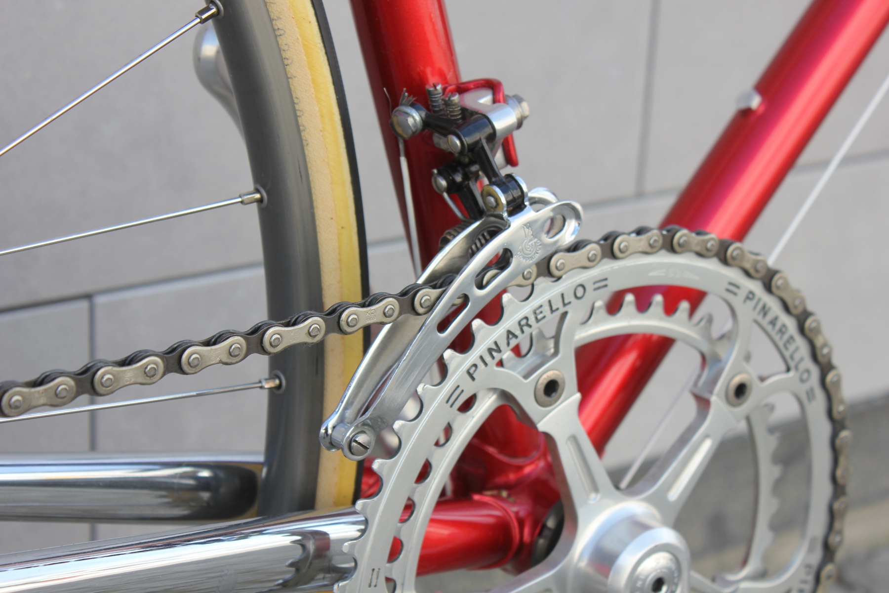 It is equipped with the legendary Campagnolo Super Record groupset, the first choice of professionals throughout the 1970s and 1980s. Precise shifting, exquisite craftsmanship, and iconic design made it the epitome of Italian component artistry.