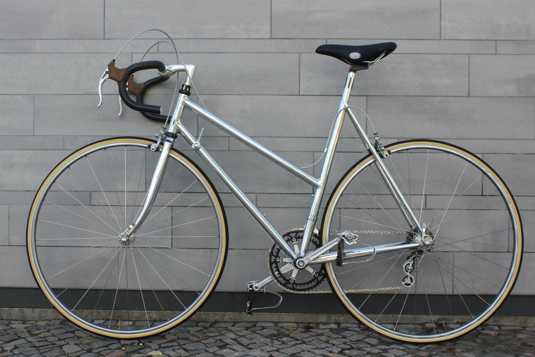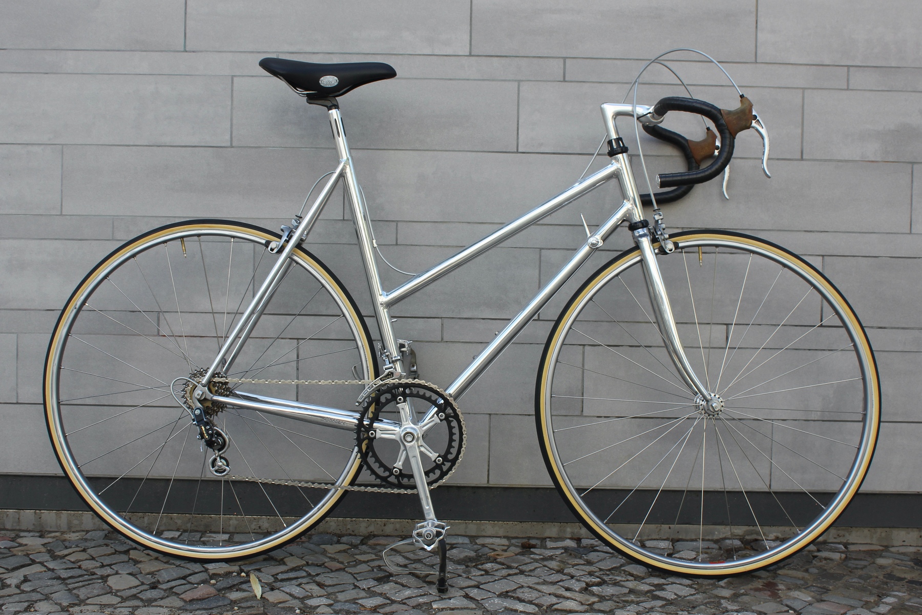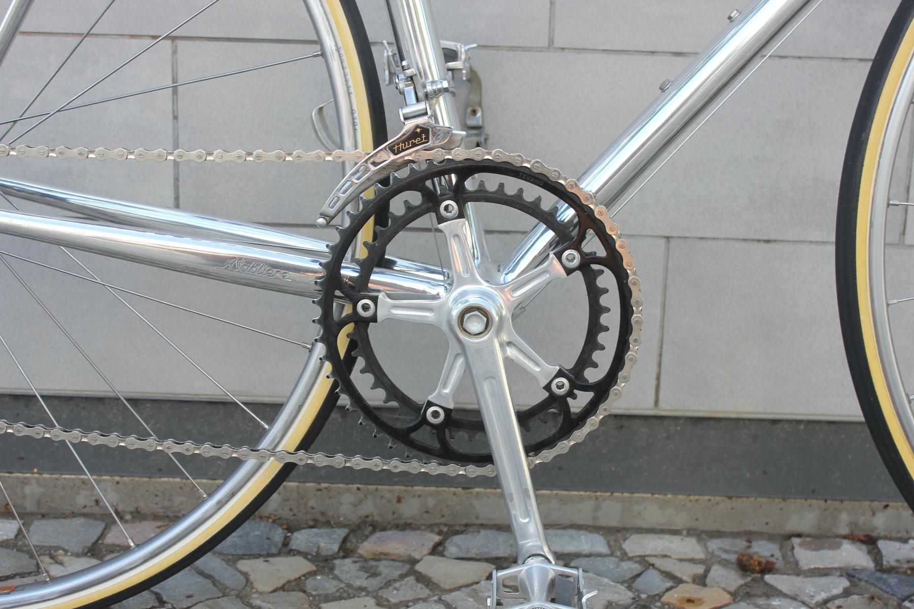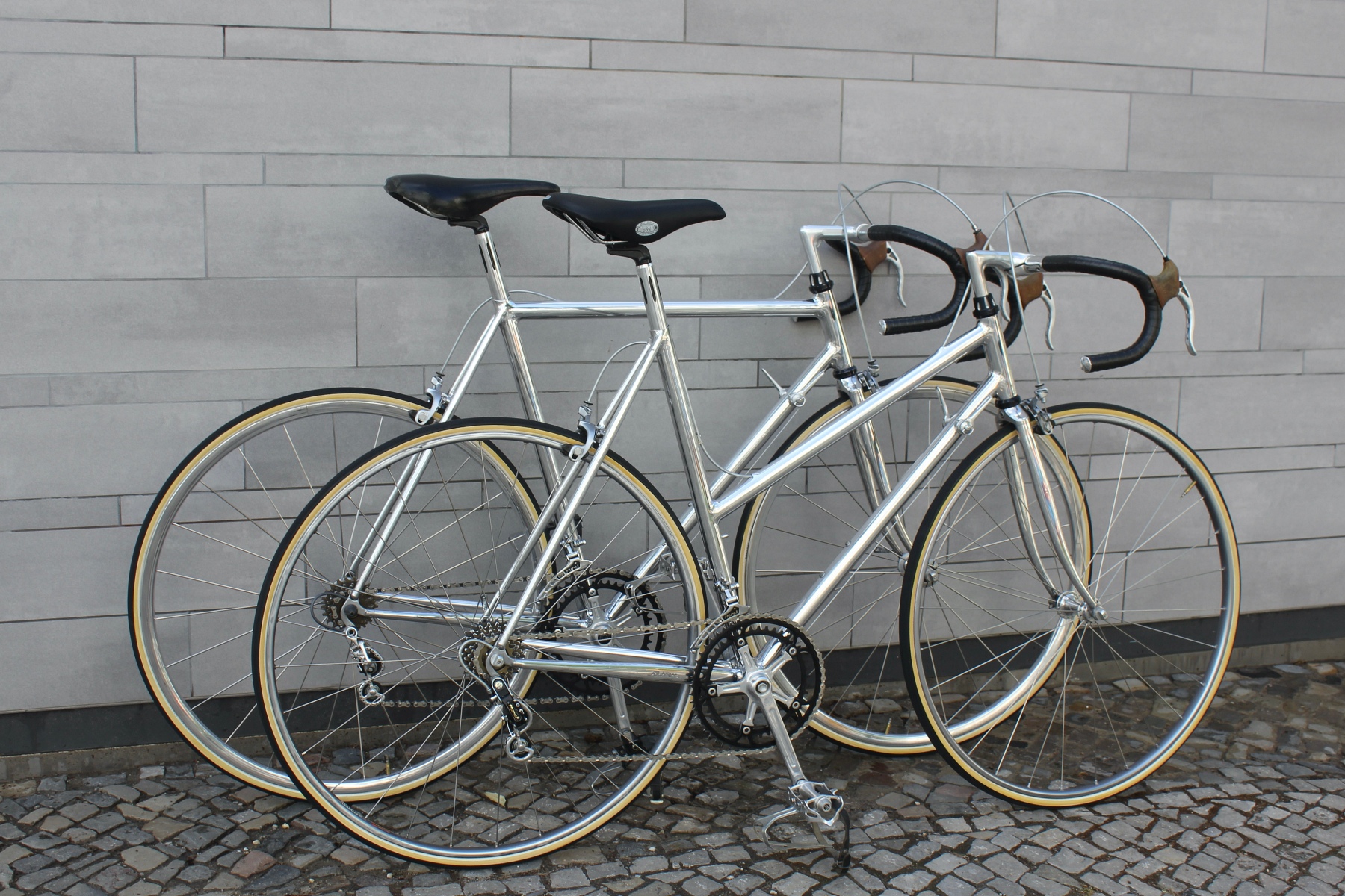 Vor ein paar Tagen hatte ich die Möglichkeit, von einem älteren Ehepaar diese beiden für sie auf Maß gebauten Räder zu kaufen. Gleich zwei dieser Sablière-Räder in Deutschland in diesem Zustand zu bekommen, ist schon eine absolute Besonderheit. Das Ehepaar reiste Ende der Siebziger nach Frankreich, um die Rahmen dort zu bestellen. Sablière hatte beim ersten Besuch jedoch kein großes Interesse daran, für die beiden Deutschen Rahmen zu fertigen. Erst als sie am nächsten Tag mit einem Bekannten erneut die Werkstatt aufsuchten, ließ sich der Meister überzeugen, Rahmen für die beiden zu bauen. Das Ehepaar hatte bei Brügelmann im Laden von Sablière und seinen extra leichten Rädern erfahren. Sie wollten das beste Material für ihr Hobby haben. Bis zur Auslieferung der Räder dauerte es dann allerdings noch über ein Jahr.