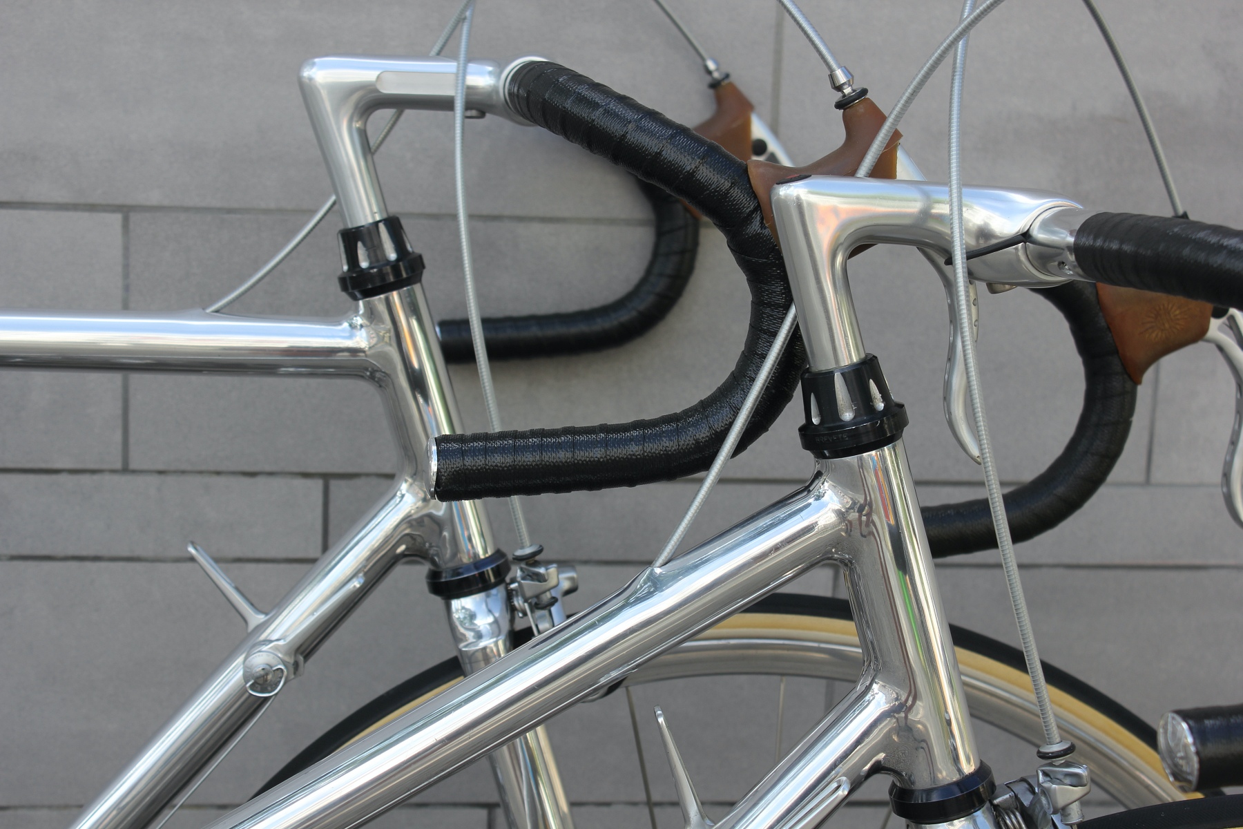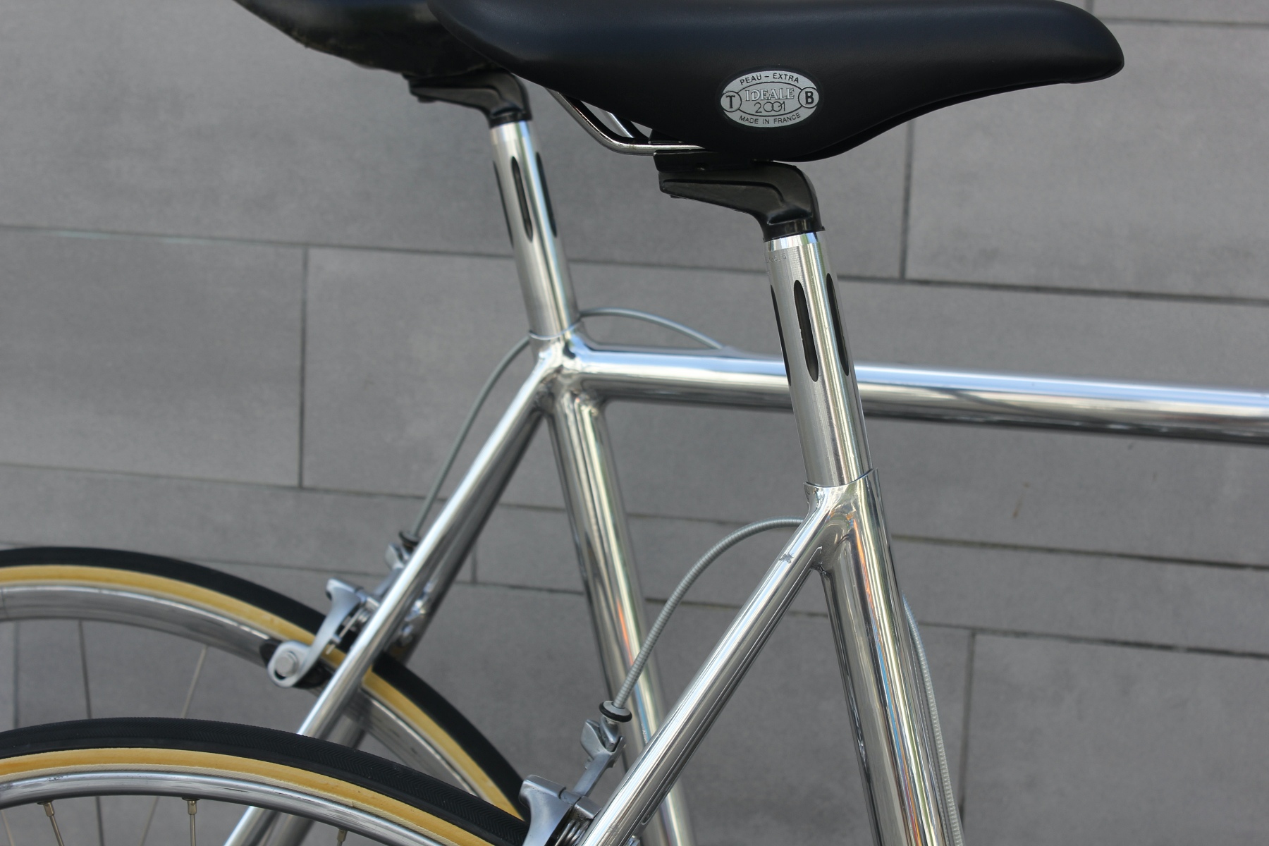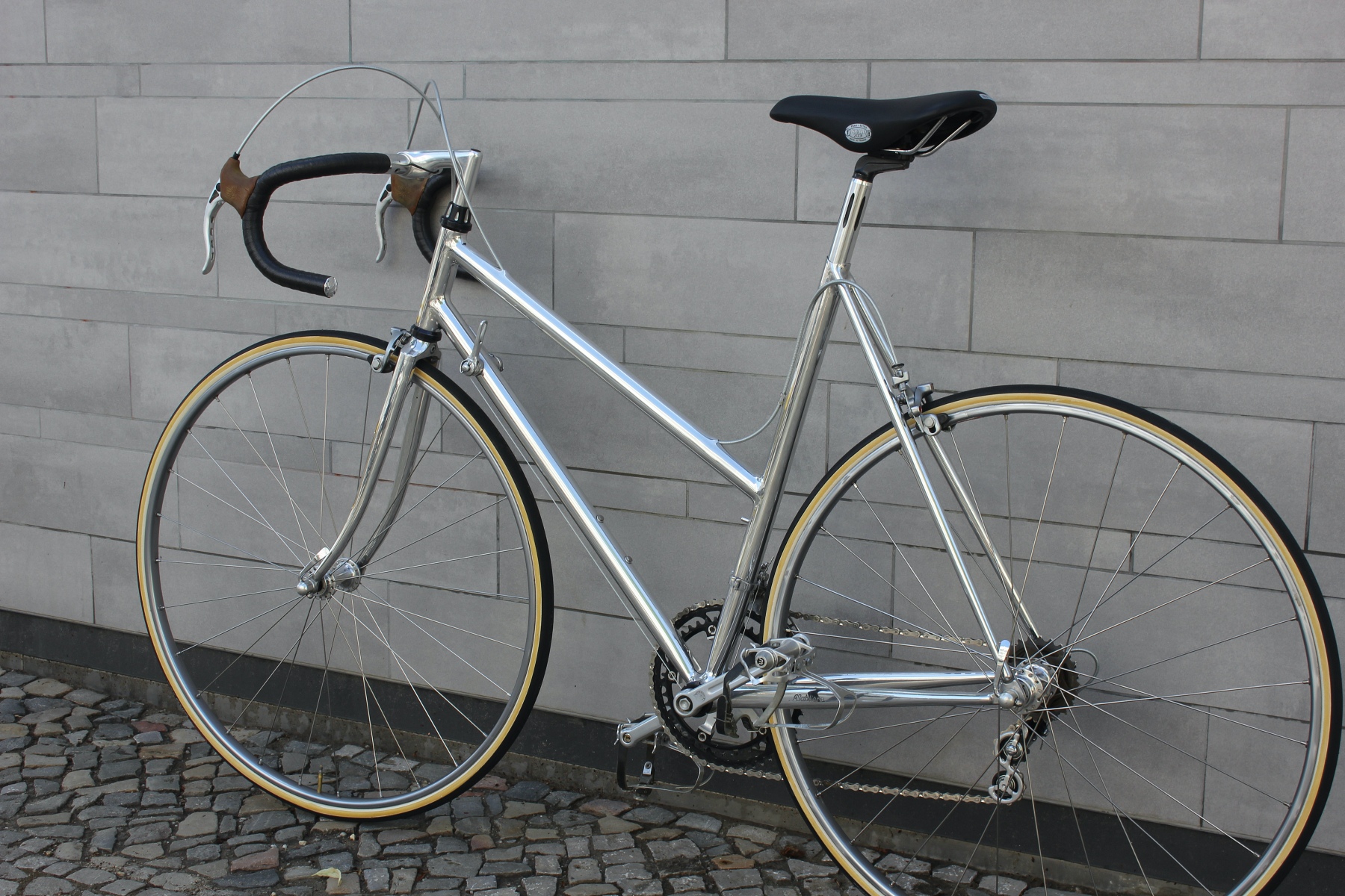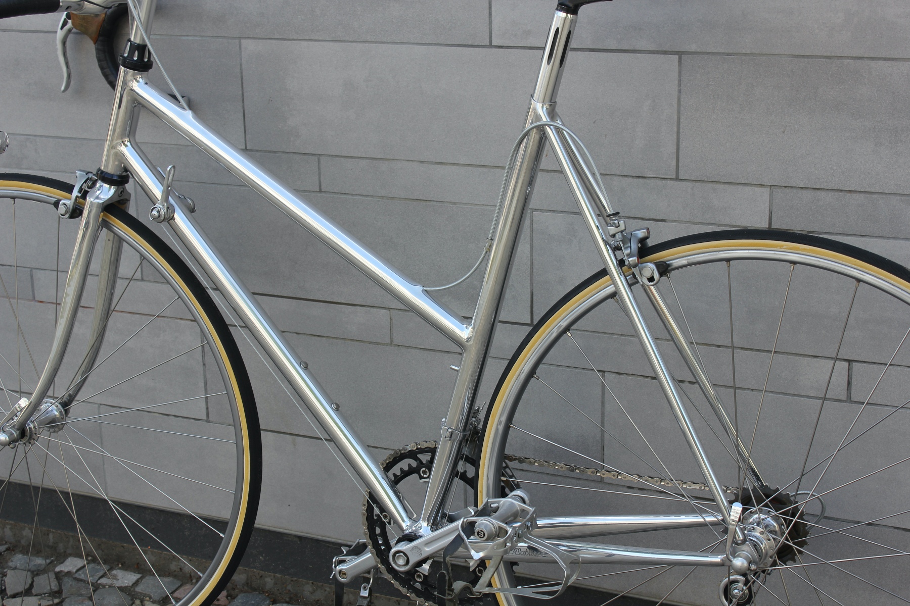 Vor ein paar Tagen hatte ich die Möglichkeit, von einem älteren Ehepaar diese beiden für sie auf Maß gebauten Räder zu kaufen. Gleich zwei dieser Sablière-Räder in Deutschland in diesem Zustand zu bekommen, ist schon eine absolute Besonderheit. Das Ehepaar reiste Ende der Siebziger nach Frankreich, um die Rahmen dort zu bestellen. Sablière hatte beim ersten Besuch jedoch kein großes Interesse daran, für die beiden Deutschen Rahmen zu fertigen. Erst als sie am nächsten Tag mit einem Bekannten erneut die Werkstatt aufsuchten, ließ sich der Meister überzeugen, Rahmen für die beiden zu bauen. Das Ehepaar hatte bei Brügelmann im Laden von Sablière und seinen extra leichten Rädern erfahren. Sie wollten das beste Material für ihr Hobby haben. Bis zur Auslieferung der Räder dauerte es dann allerdings noch über ein Jahr.