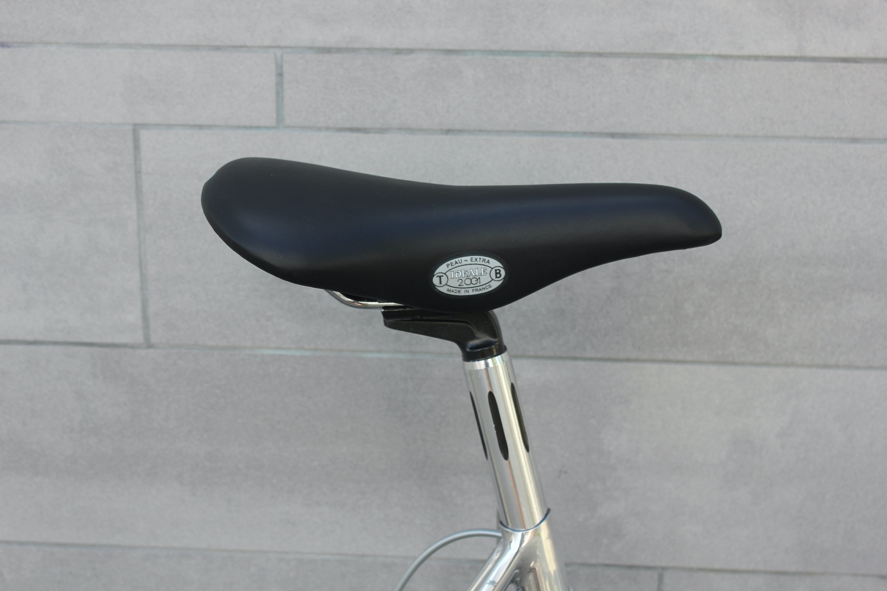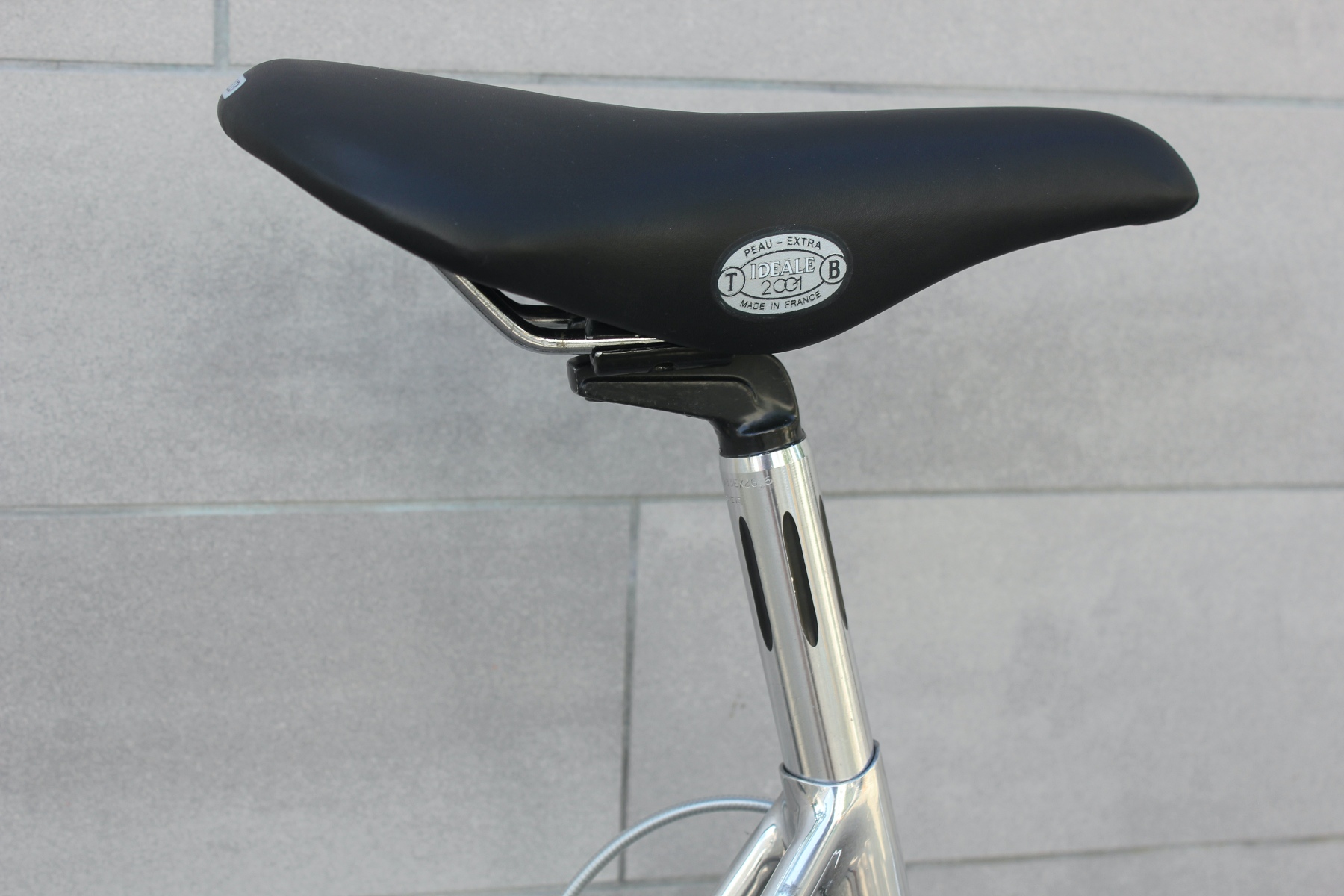 Ansonsten nur französischer Leichtbau vom Feinsten: CLB Professional Bremsen, Tevano Kurbel, Huret Jubilee Schaltgruppe, den genialen Sablière-Felgen – die später SSC-Felgen bei Mavic wurden, der ultraleichte Ideale 2001 Sattel, der 130g leichte Maillard Dural Alu Schraubkranz und die leichten Maillard 700 Pedale mit Zefal Alu Haken. Mehr französischer Leichtbau ging zu der Zeit sicher nicht. Dieses Rad ist Kunst! Dieser Klassiker ist sicher etwas für jeden Liebhaber extrem leichter Räder. Wer sich an der traditionellen Kunst des Rahmenbaus erfreuen kann, dem gehen hier sicher die Augen auf. Eine echte Maschine mit einem Gewicht von gerade einmal 6,9 kg (wie abgebildet – „fahrfertig").