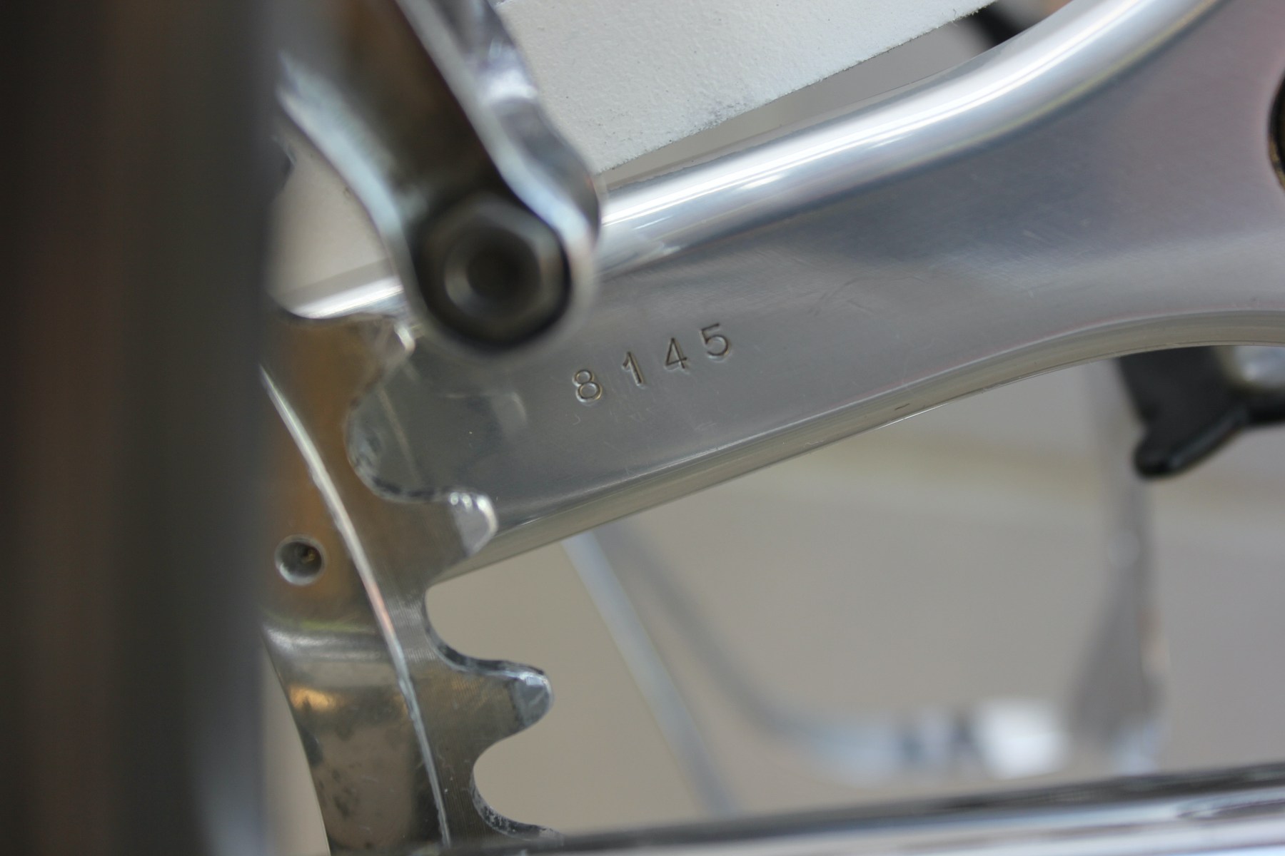 When you think of bikes from the time around 1983, when the group came on the market, so you usually have the big Italian manufacturers like Colnago, Pinarello Bianchi ect in mind, but on a frame from Günter Krautscheid from Bochum comes first not directly. Completely wrongly. Anyone who looks at this, like every Krautscheid custom-built frame, immediately recognizes the craftsmanship behind it. The magazine Tour has published many years ago once a great article about Günter Krautscheid (See picture gallery) and speaks of the fact that the better frames in Italian design, actually come from Bochum. The guidance of the brake cable in the top tube is visually, as well as technically hard to beat added extremely filed sleeves, the long fork blades on the inside of the fork, the Cinelli bottom bracket sleeve, which Krautscheid drilled out and moisture from the frame to get and to save weight, the way to solder the seat stays to the seat tube - this frame offers so much that the series frames from Italy rather lacked. Günter Krautscheid knew what makes a real racing bike frame. He himself rode successfully for many years in amateur racing. The paint job on the frame is also of very good quality. All in all, I can say that this is one of the best frames I have ever had in my hands in my time from Vintage Velo. Light weight, extremely high accuracy in frame construction and top paint.