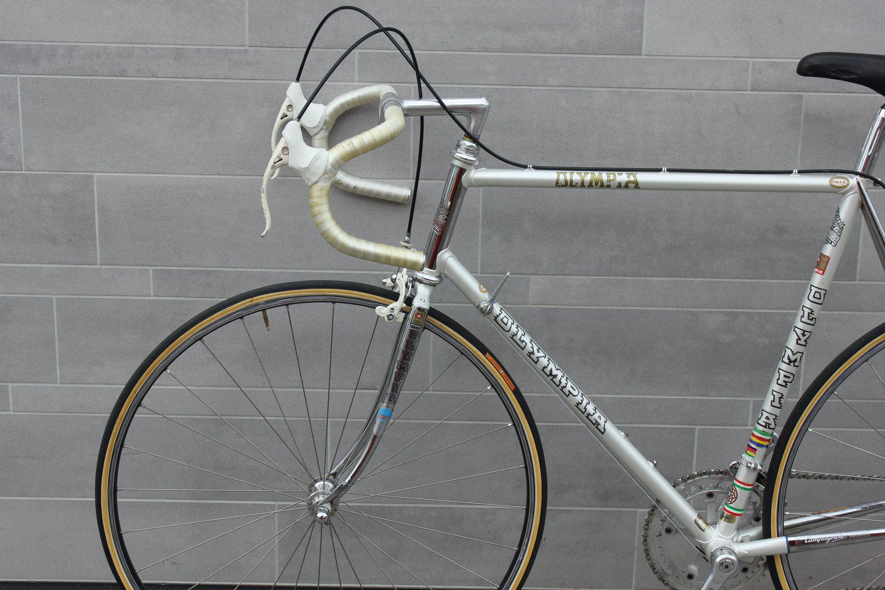 Olympia is probably the oldest Italian bicycle brand after Bianchi (founded in 1885). It was founded in 1893 by Carlo Borghi. Initially they also built motorcycles, but Borghi's passion and energy was for professional cycling. So he built the first racing bike frames, which were different from the frames of other manufacturers at the time, and had athletes compete in his Olympic jerseys, white with a black stripe. For example, Enrico Mollo finished second in the Giro d'Italia (1940) and Pietro Chiappini won the Milan-Turin race (1941) on Olympia wheels.