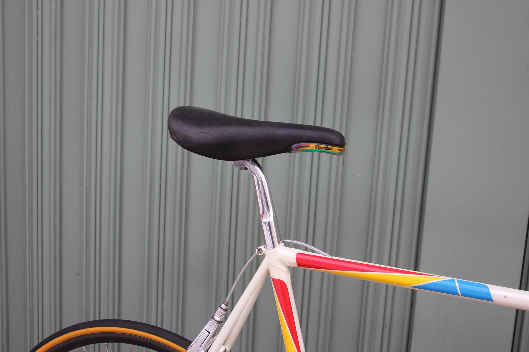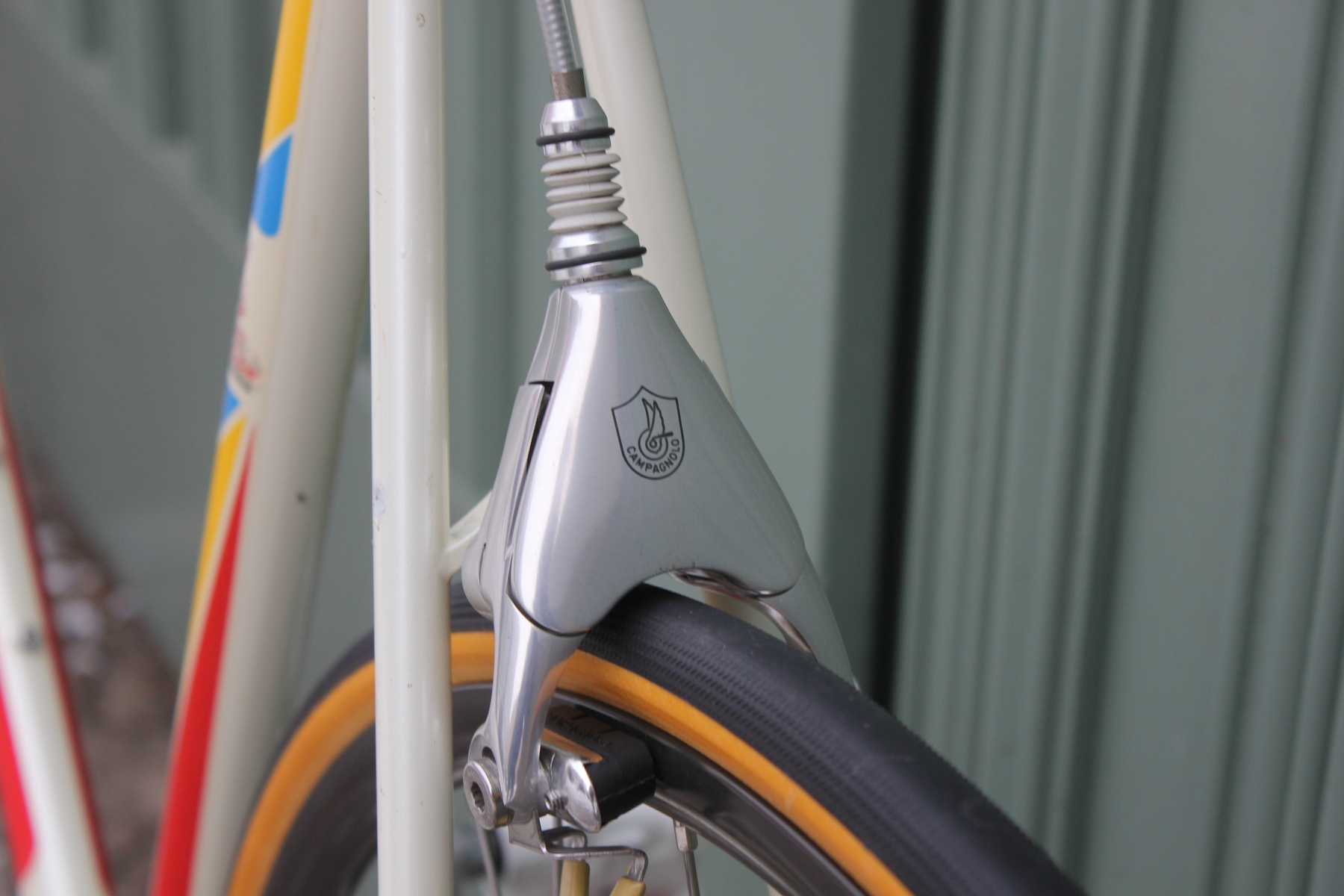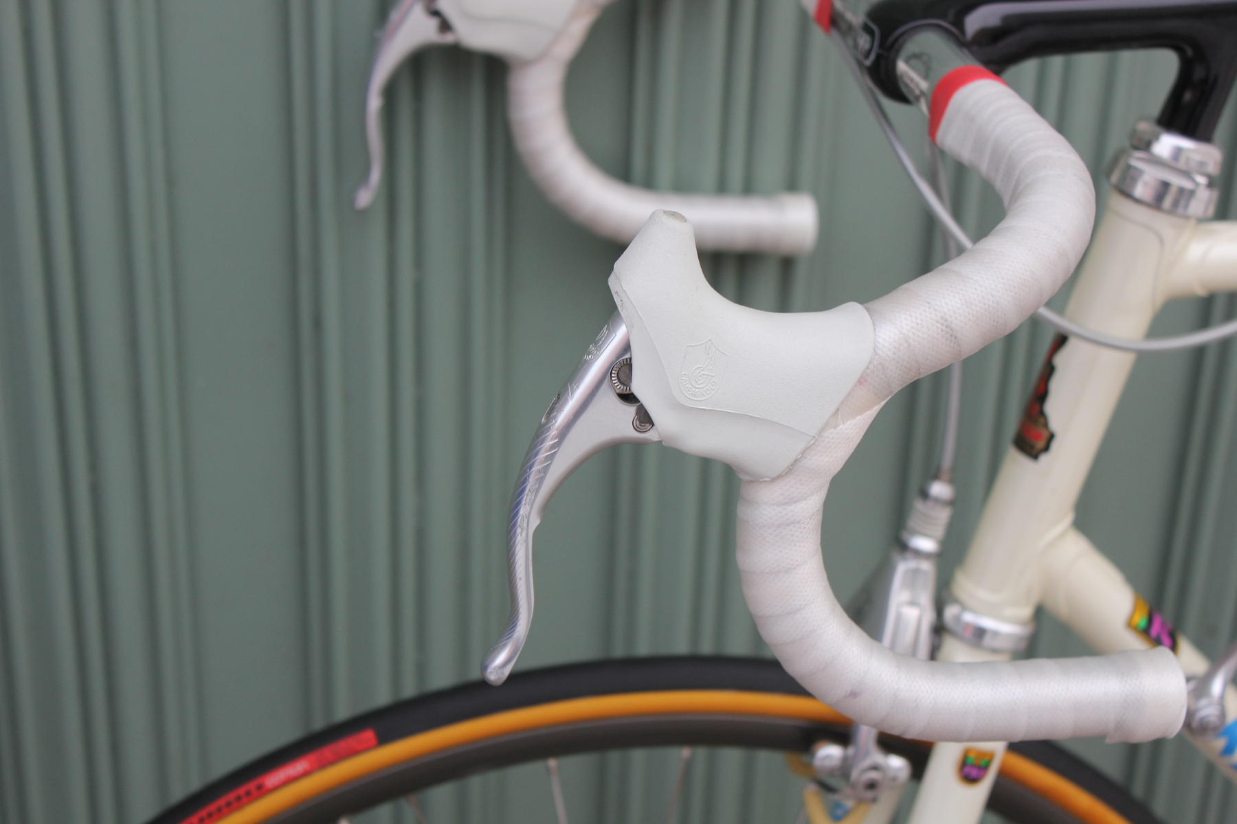 The bike is equipped with an almost complete Campagnolo C-Record group, including the legendary Delta brakes. These brakes stand, like few other components, for Campagnolo's technical ambition and design boldness of the era. Their distinctive design language, combined with high-quality mechanics, makes them an iconic element of the late 1980s and early 1990s. Combined with the C-Record group, the bike presents a coherent overall impression of elegance, functionality, and technical sophistication, representing the state of the art in professional cycling at the time.