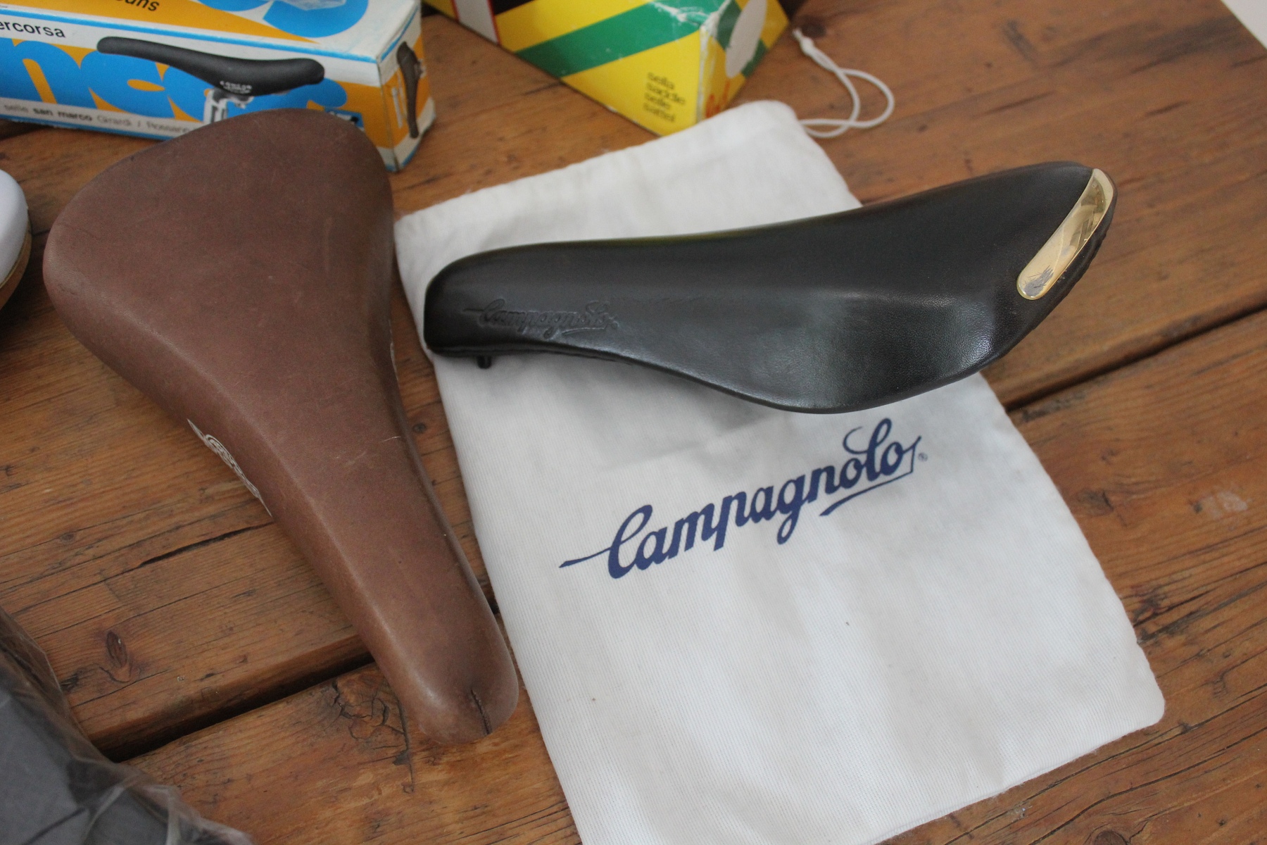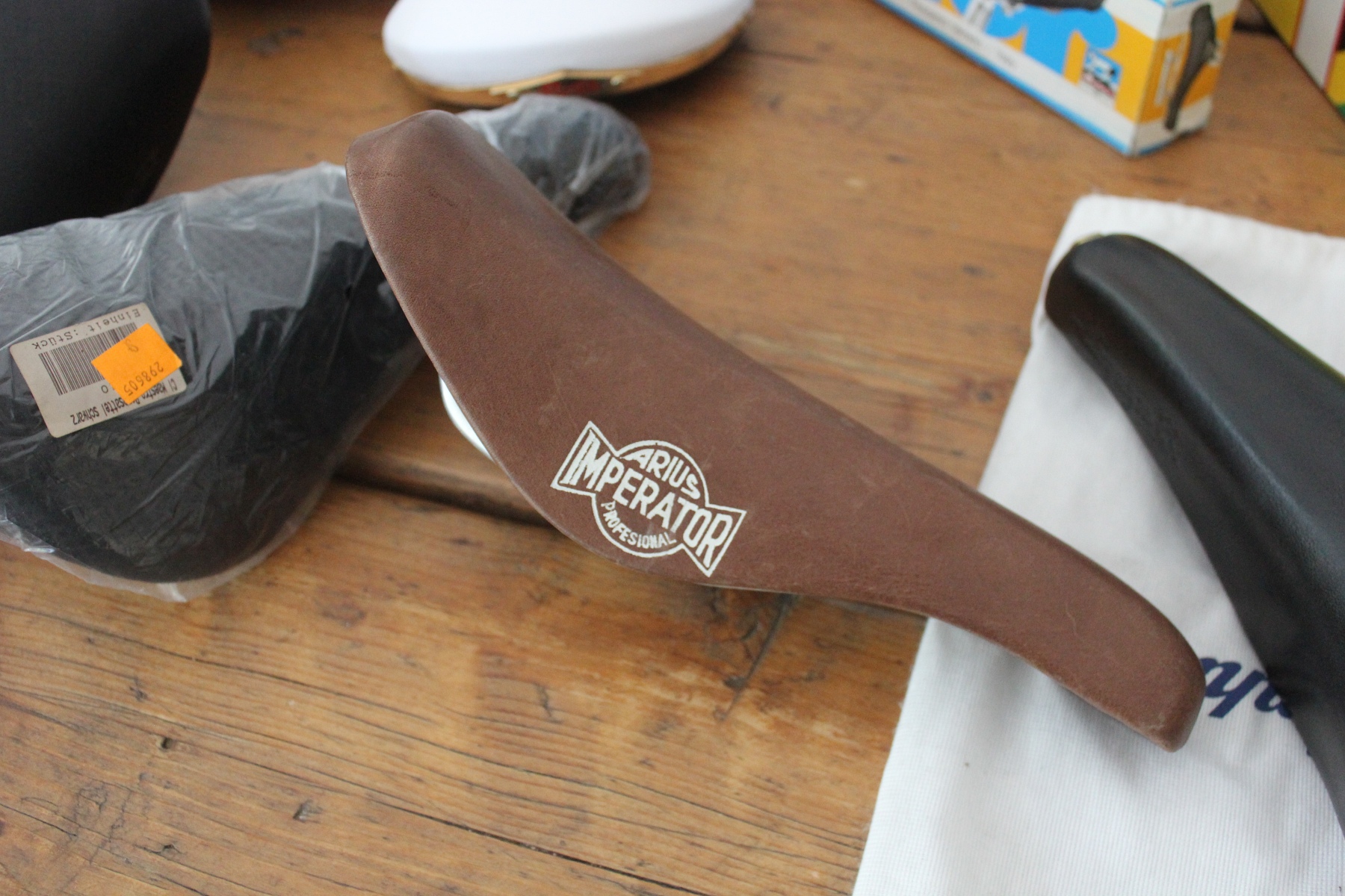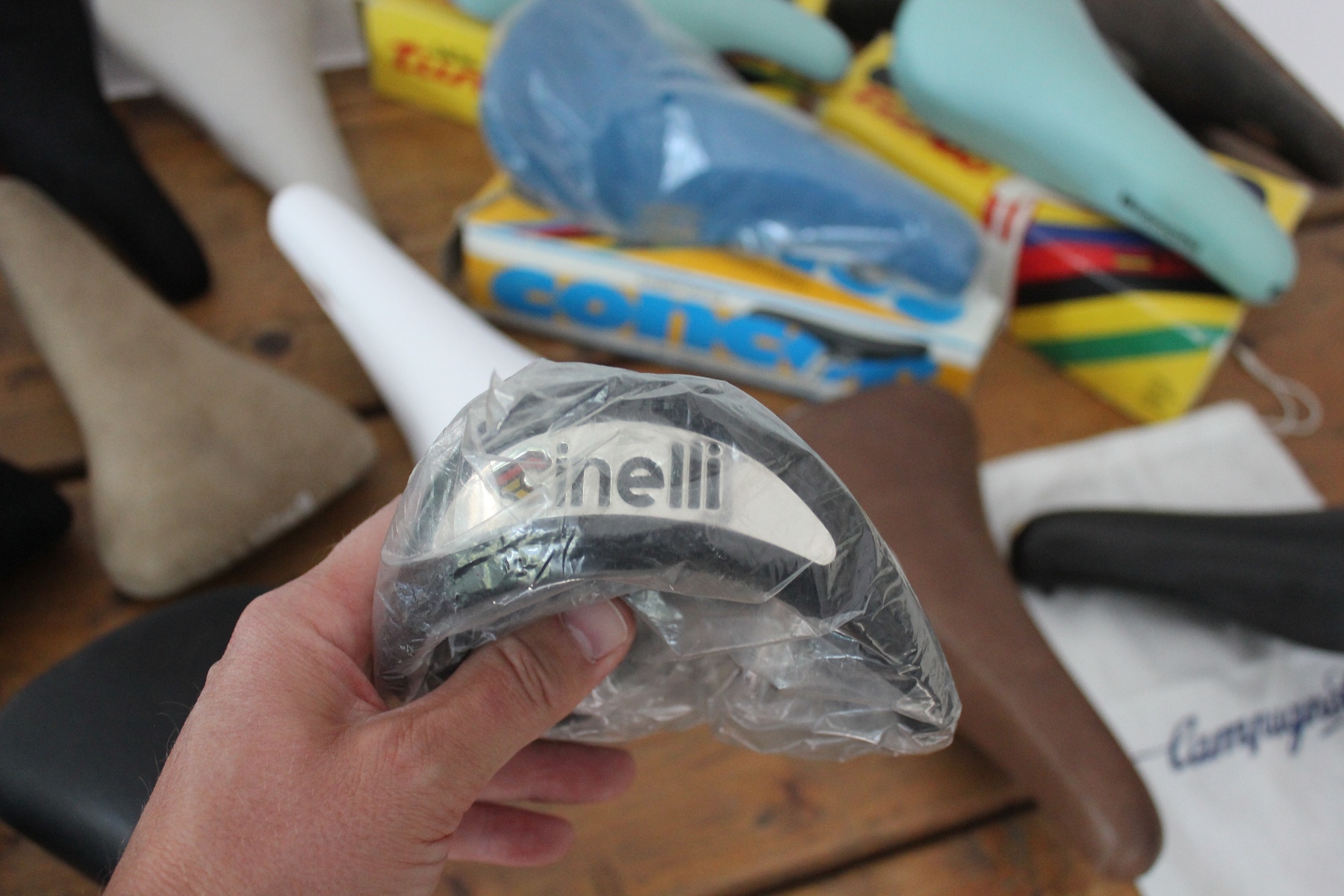 Neben den originalen und restaurierten Rennradsätteln habe ich auch neu aufgelegte Klassiker von Selle San Marco im Sortiment – darunter die legendären Modelle Rolls, Concor und Regal, die glücklicherweise wieder produziert werden.